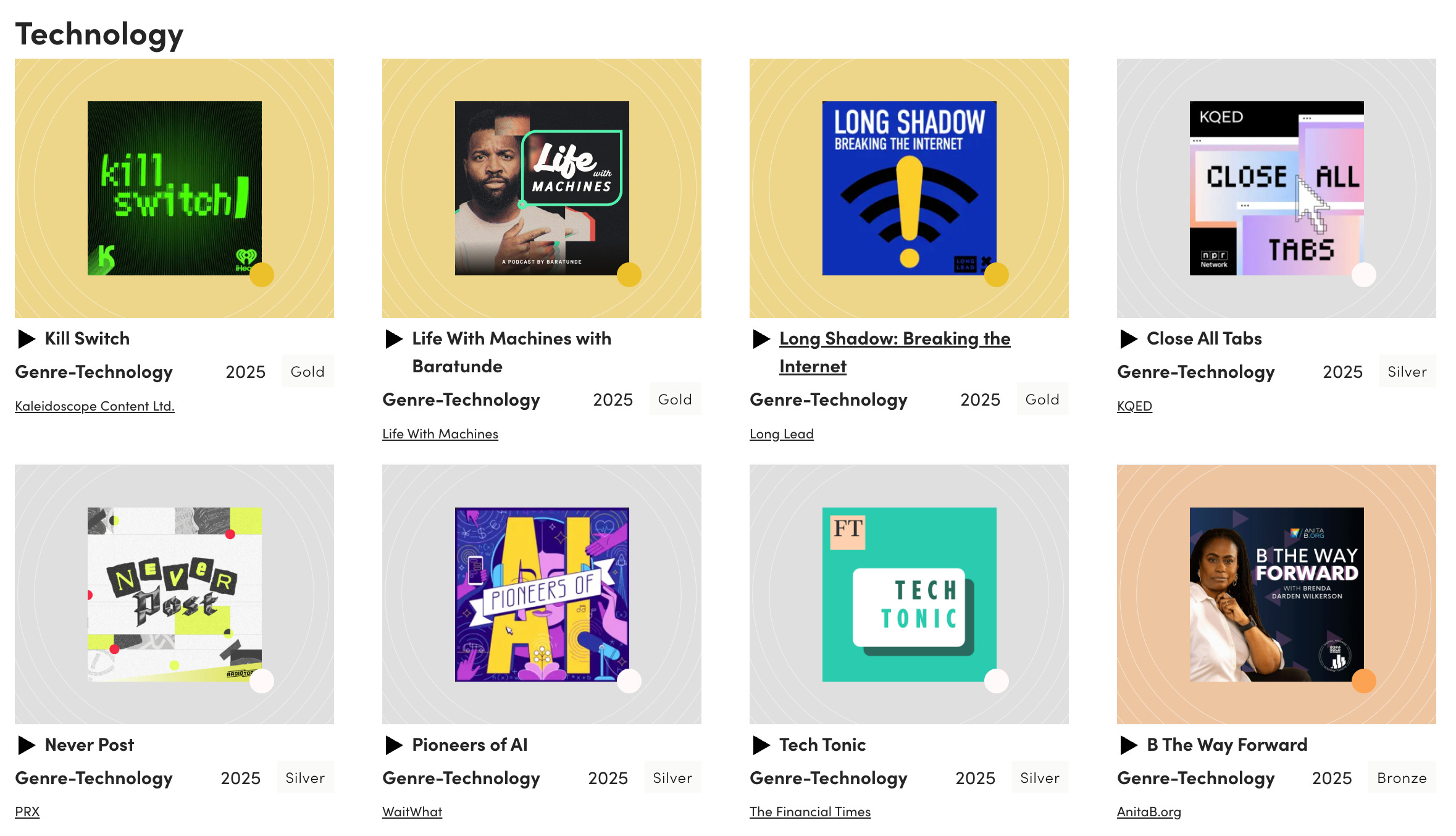 Life With Machines took home Gold in the Technology category at this year’s Signal Awards which “recognize the podcasts that define culture.” And not just that — three of our individual episodes were honored too!!